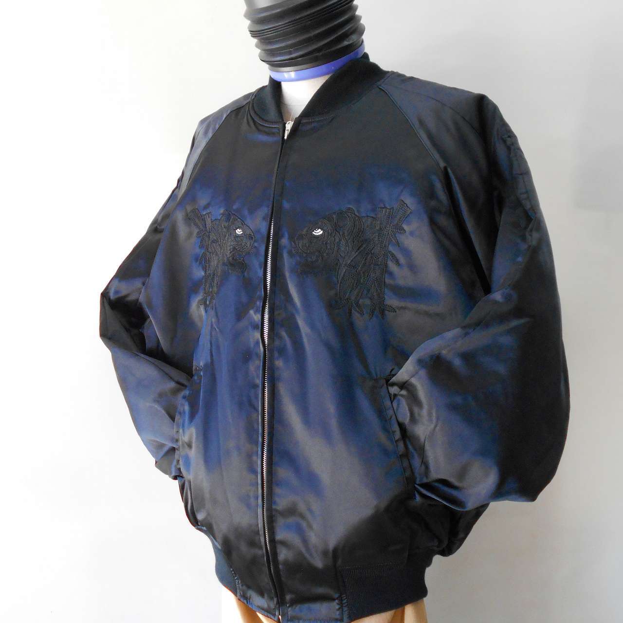 3L 竹トラ刺繍スカジャン 黒×黒 Embroidered jumper (SUKAJYAN)