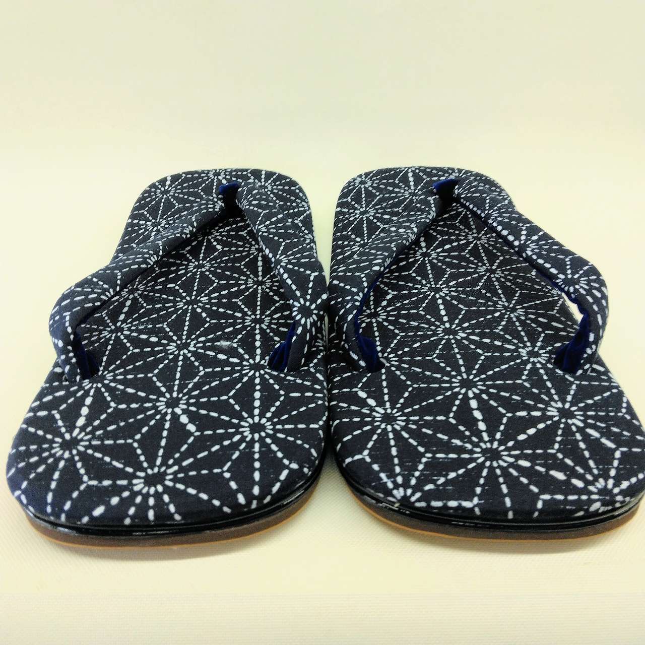 雪駄(せった) 麻の葉柄プリント LLサイズ leather soled sandals (Setta)