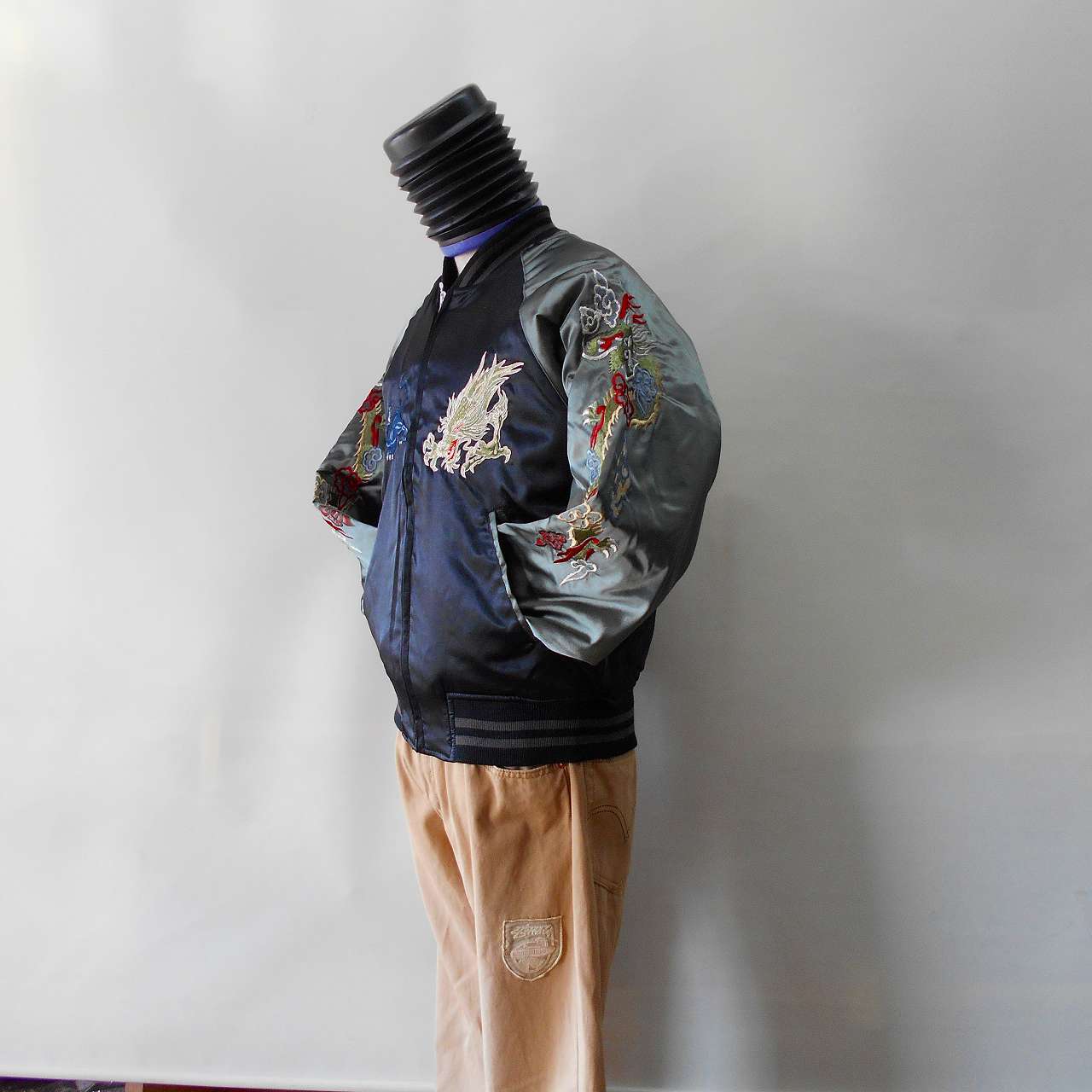 黒ヒョウVS龍刺繍スカジャン LL Embroidered jumper(SUKAJYAN)
