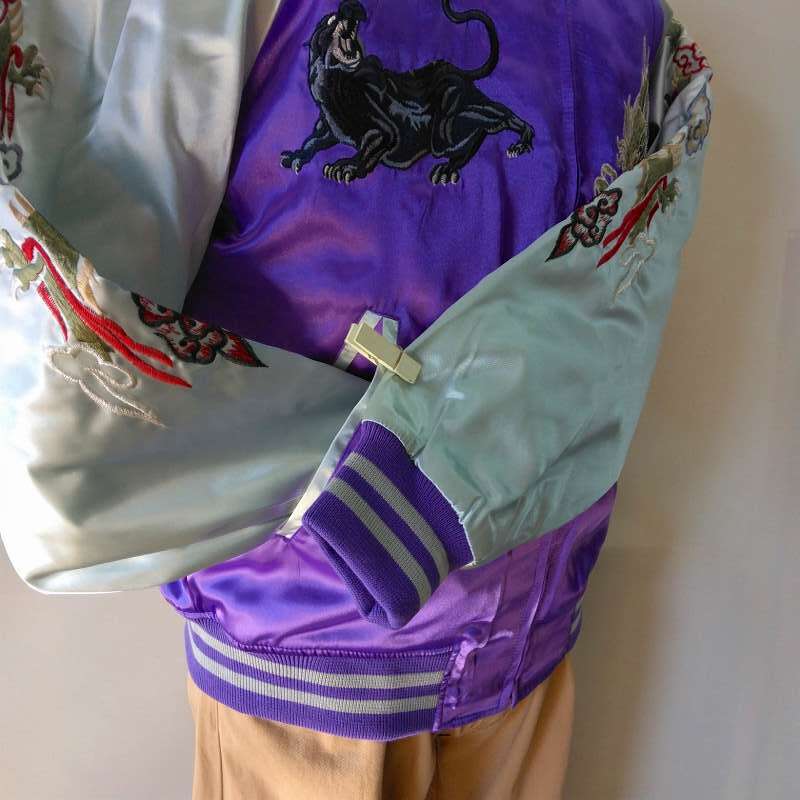 黒ヒョウVS龍刺繍スカジャン LL Embroidered jumper(SUKAJYAN)