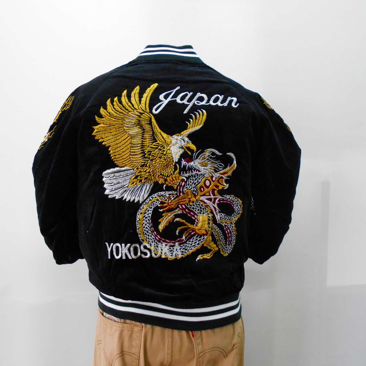 タカ龍刺繍の別珍素材のスカジャンです。