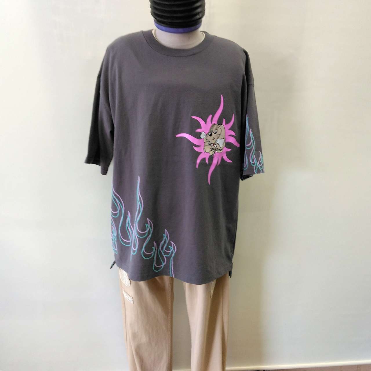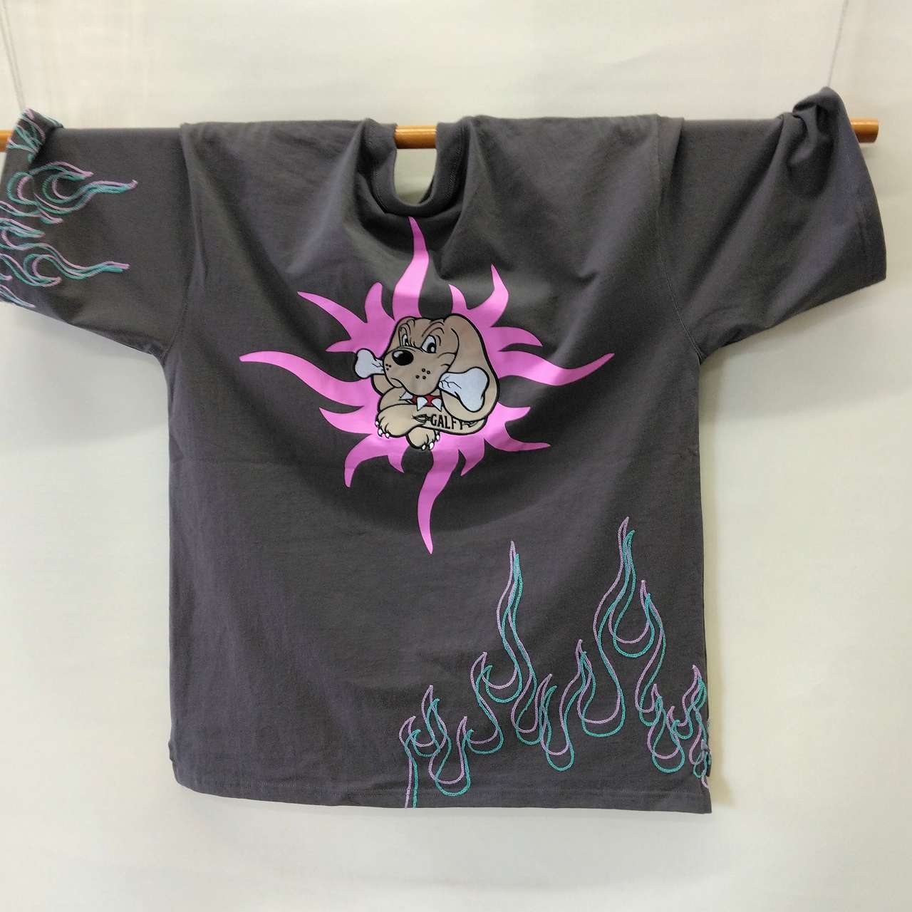 ガルフィー GALFY 半袖Tシャツ 炎上 濃グレー 中型犬サイズ It is a T-shirt with a character.