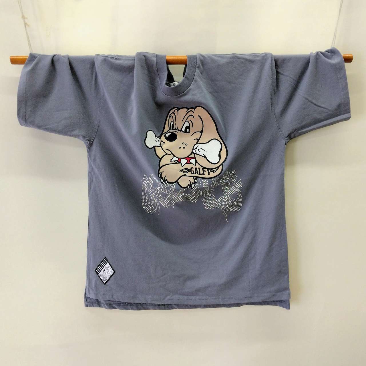 ガルフィー GALFY 半袖Tシャツ ギラギラ グレー 中型犬サイズ It is a T-shirt with a character.