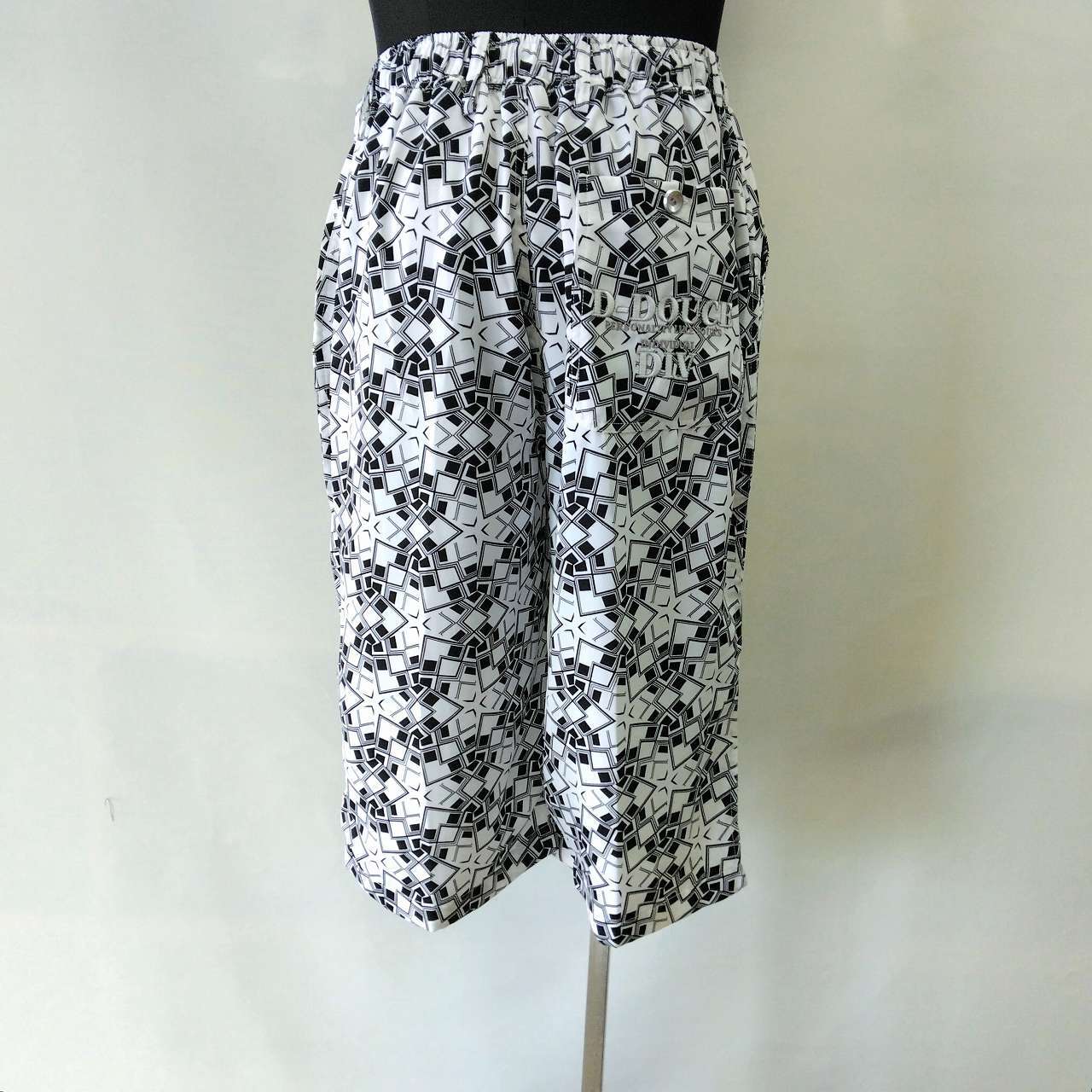 プリント生地の白黒デザインがおしゃれなシャツとパンツになっています。