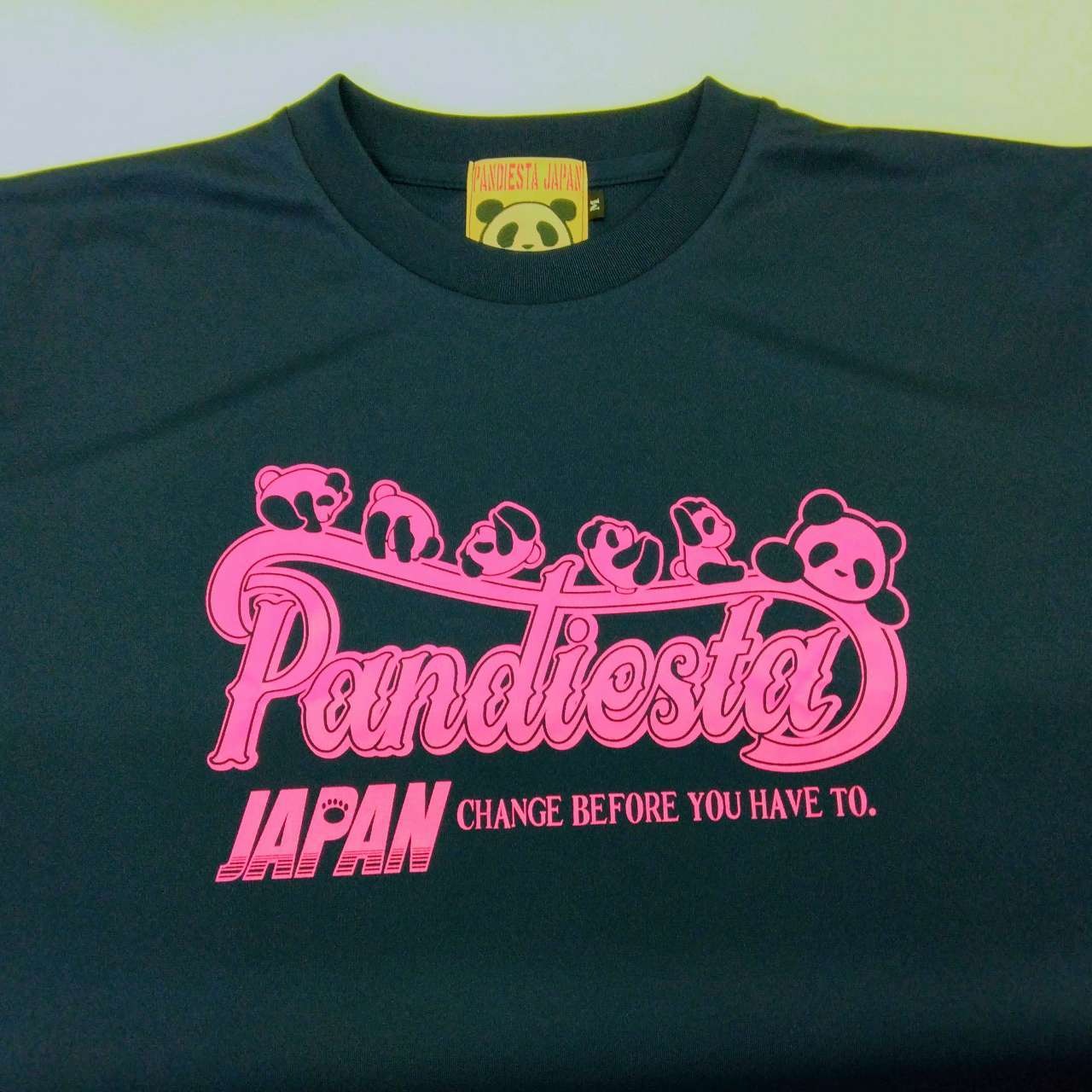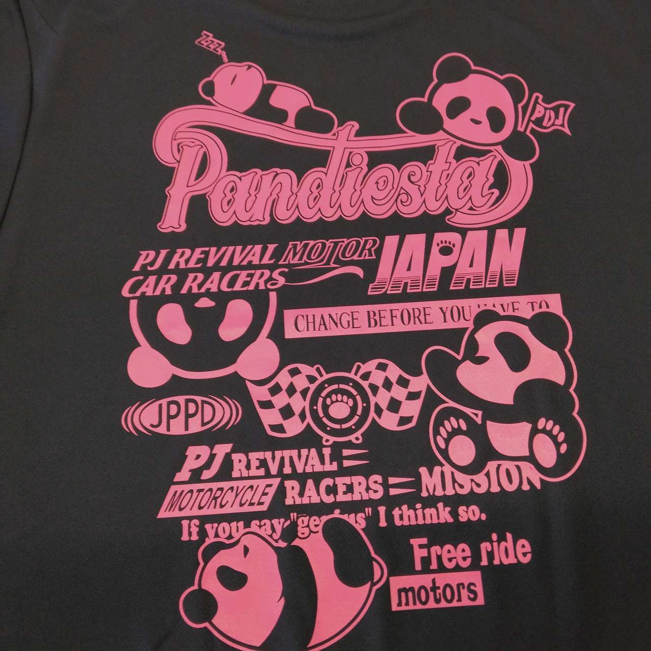 パンディエスタ 半袖Tシャツ コロコロパンダプリント 紺×ピンク M L XL T-shirt with panda print