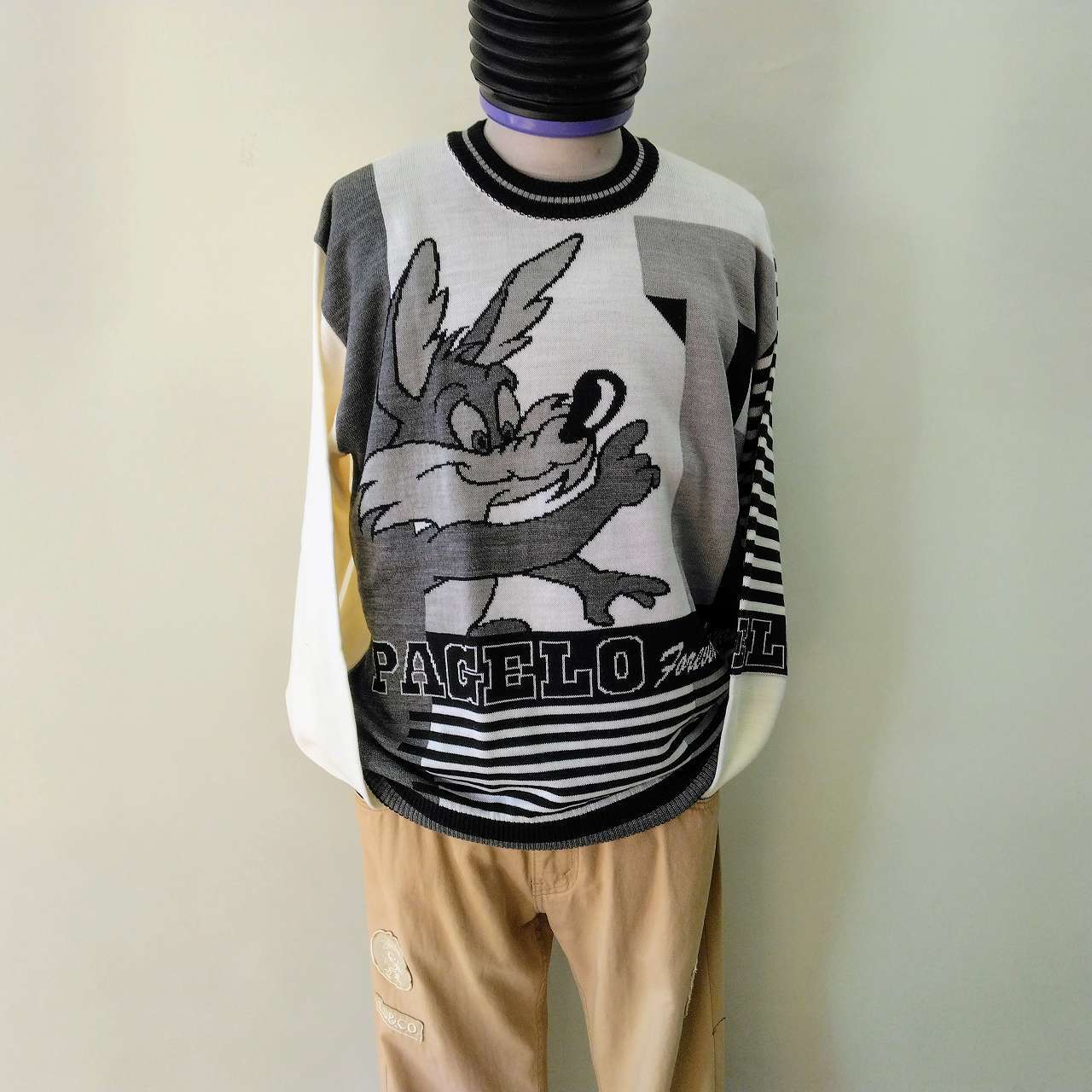 パジェロ セーター コヨーテ柄 Lサイズ オフ白
