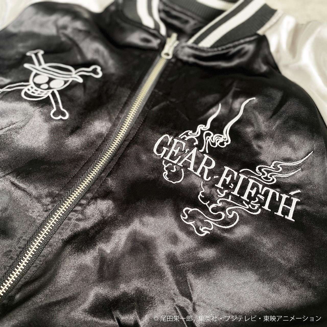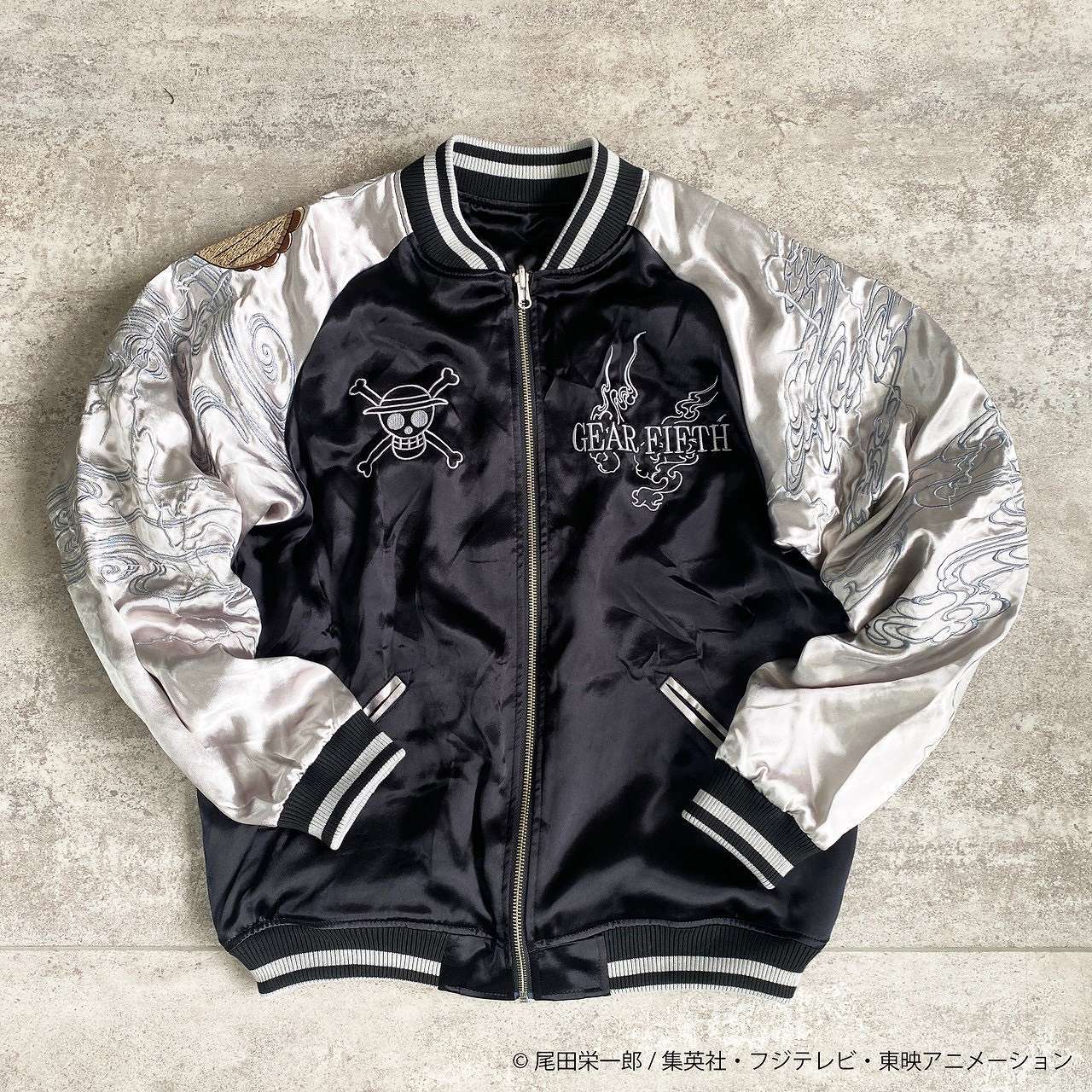 このスカジャンはファッショナブルで洗練されたスタイルを演出し、ワンピースの世界観に思いを馳せることができます。
