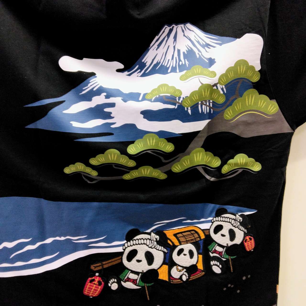 背中には東海道五十三次を旅するパンダの姿が刺繍されており、個性的で可愛いアイテムです。