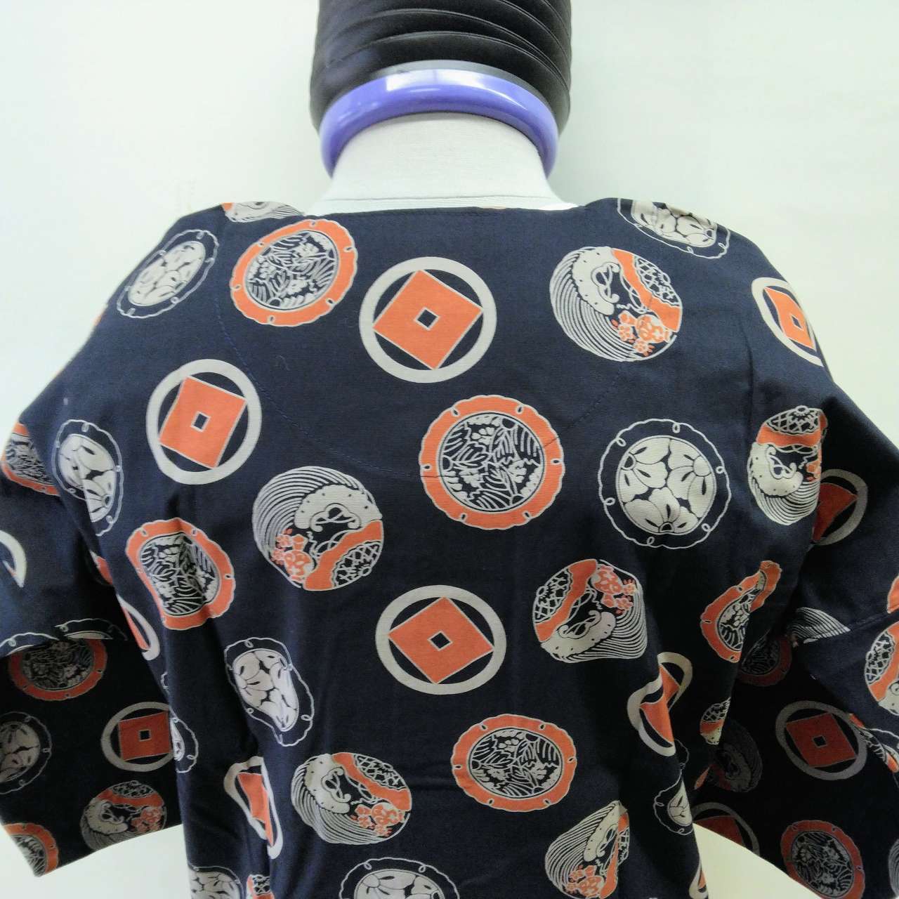 伝統的な家紋柄がプリントされた、特大サイズのお祭りにピッタリの装いです。