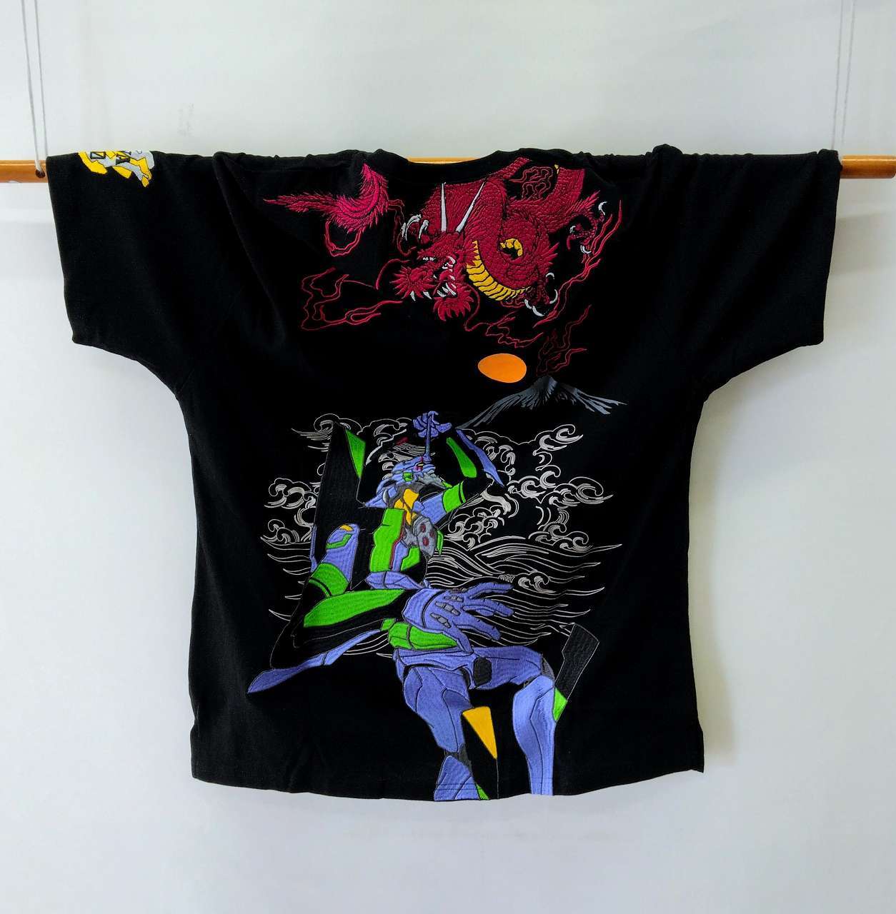 このエヴァンゲリオン×錦コラボ半袖Tシャツは、背中に赤い龍と初号機が刺繍された、特別仕様の一枚。