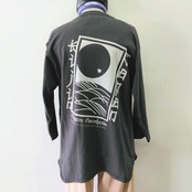 7分袖 和柄Tシャツ 花札プリント チャコール XXL Hanafuda Print T-Shirt