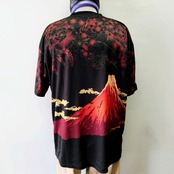 和柄Tシャツ 赤富士 黒 XXL