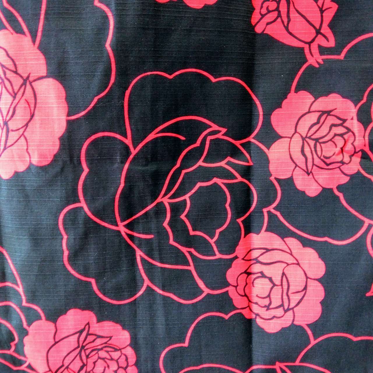 黒地に赤いバラのプリントが施されたこのシャツは、祭りの華やかさを存分に楽しめる1枚です。