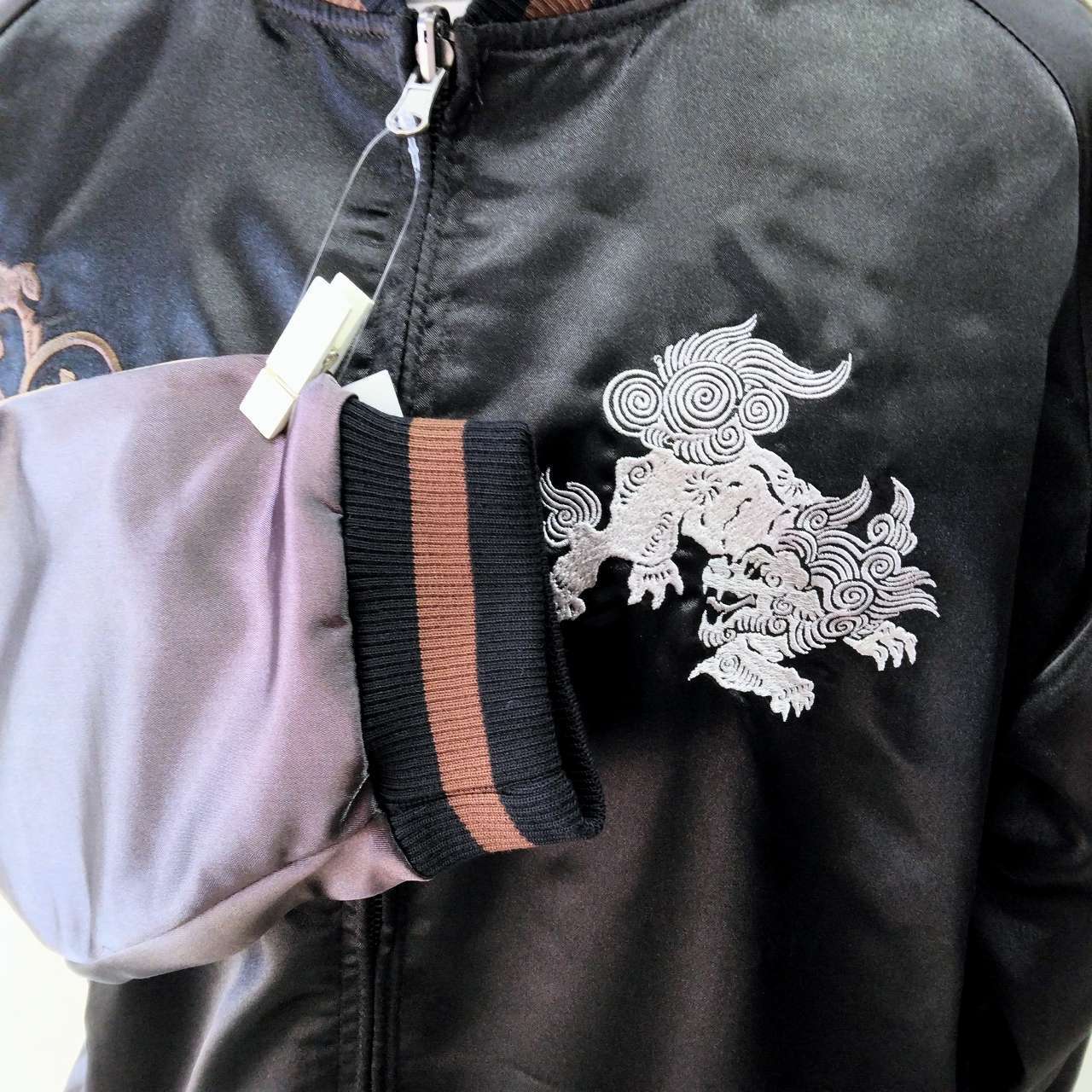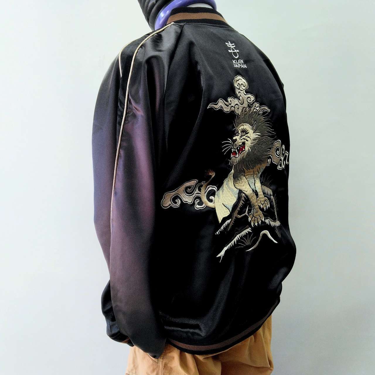 kijin ライオン刺繍スカジャン リバーシブル XXL 黒×チャコール Embroidered jumper(SUKAJYAN)